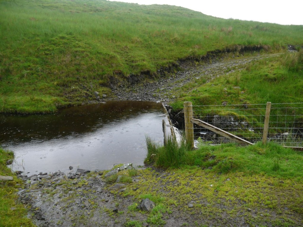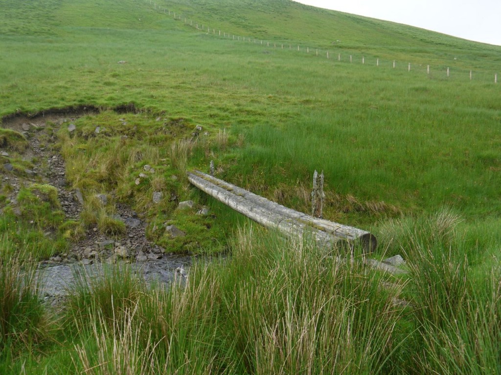 One more burn crossing remained, and the OS has a footbridge marked. This was two logs and might have been usable if it hadn’t been wet and slippy. I crossed at another flooded ford a little further along. From here there is a more substantial, albeit muddy, track all the way back to the start.