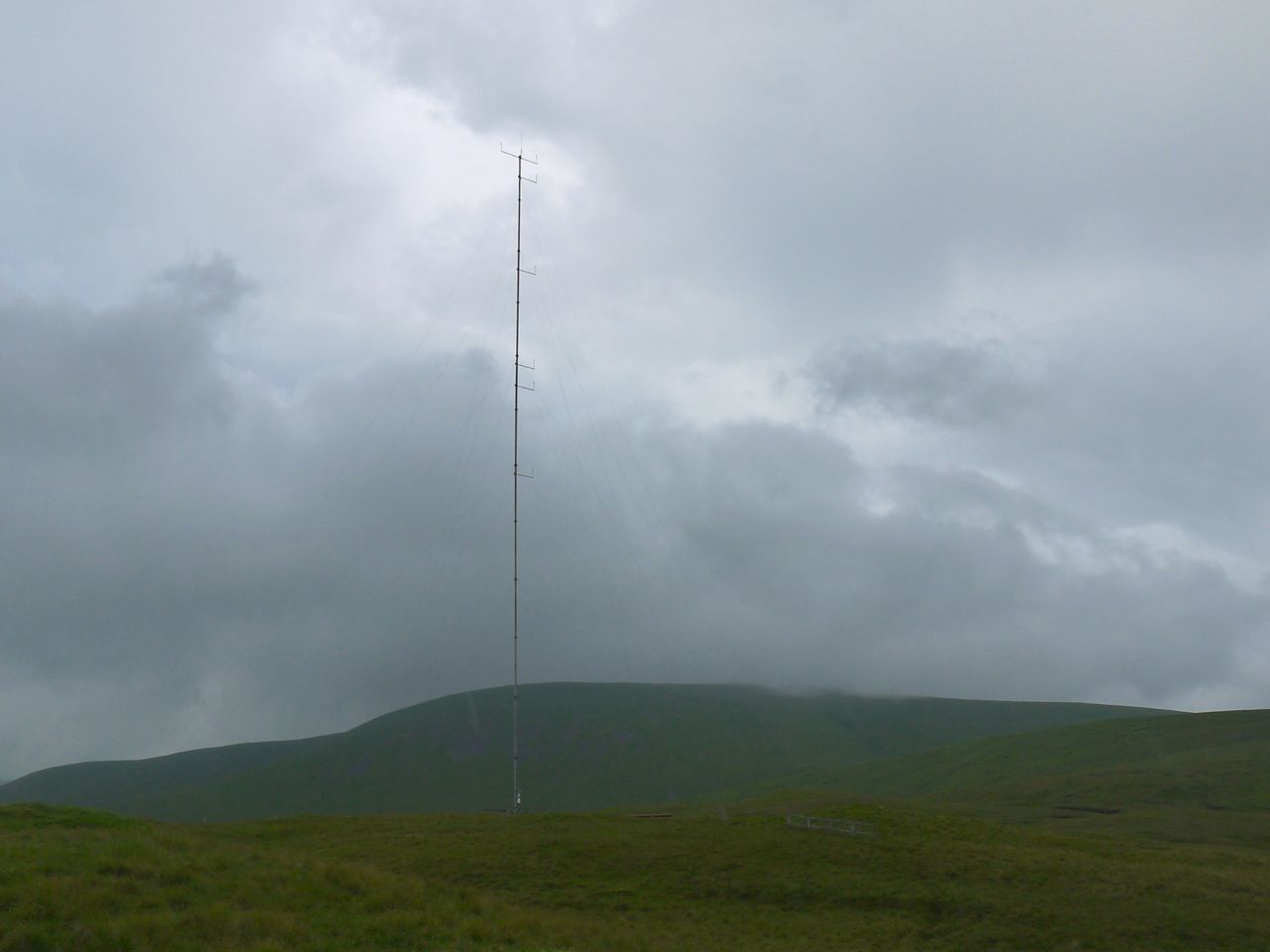 As time went by though, I began to worry that I had missed the bend when I had strayed from the fence to avoid boggy areas. Then I spotted a small change in the fence’s direction and crossed it to head west. I was in fact on Lamb Craig and the mist now lifted to reveal a large radio mast. By the time I reached the mast the mist had lifted completely to reveal some impressive cloud formations.