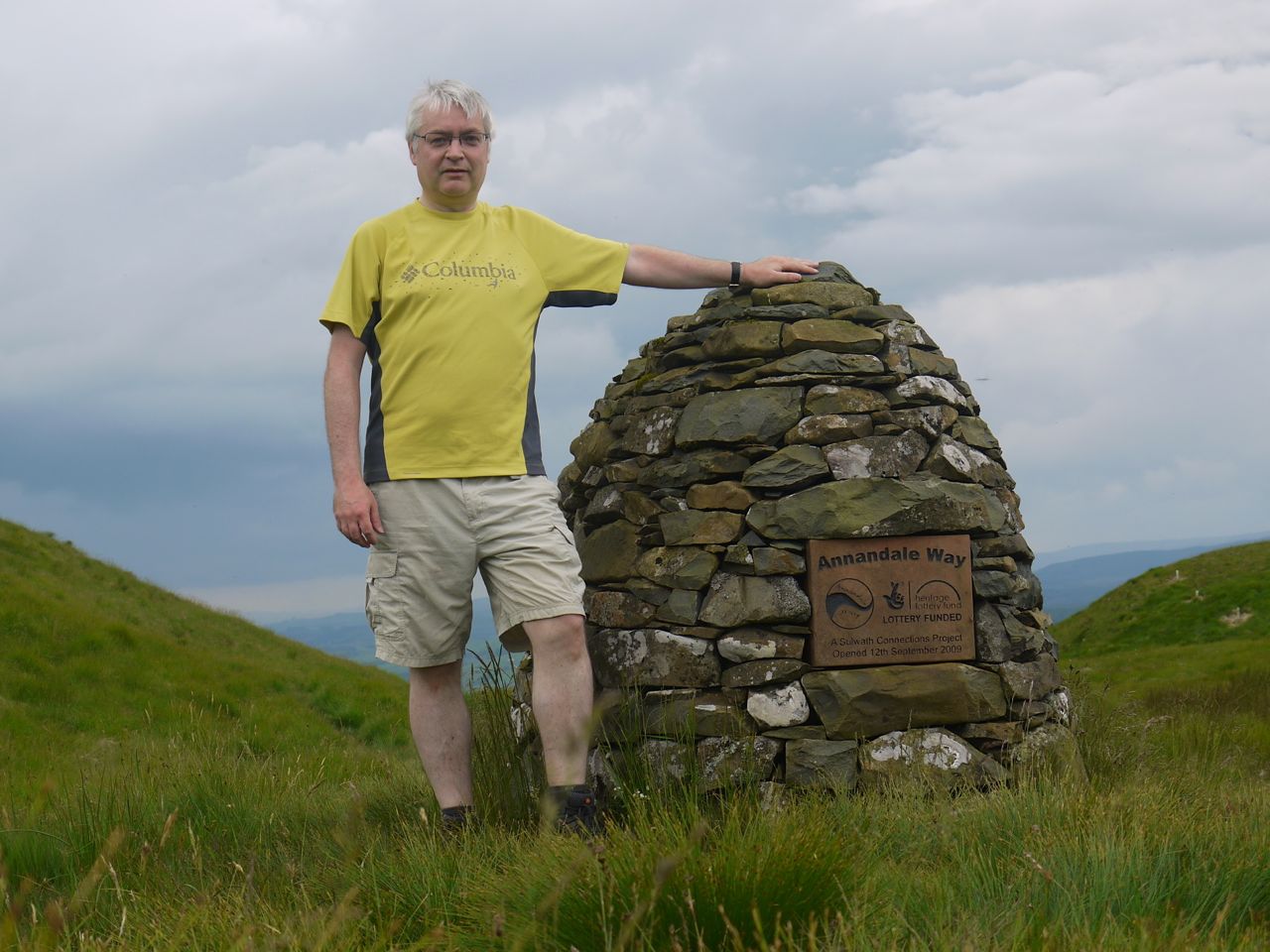 The ups and downs of Annanhead Hill, Great Hill, and Chalk Rig were steeper than I remembered, but I have noticed that walks in the mist seem to be remembered as less arduous. It took about an hour to reach the cairn marking the start of the Annandale Way, which sits in the boggy col below Spout Craig. From here it was a short climb up Spout Craig and onto Whitehope Heights, with several false summits on the way.