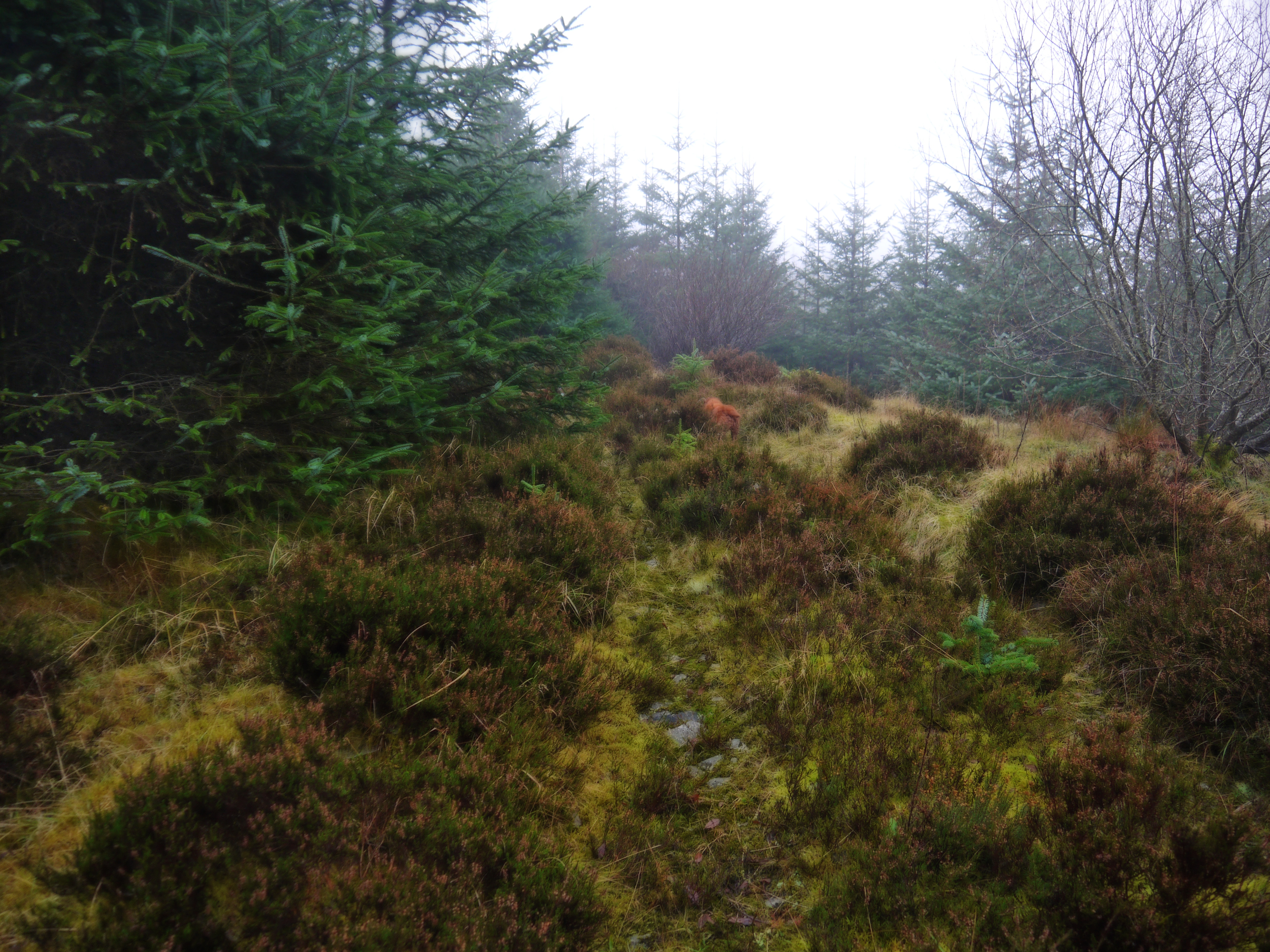 The “forest break” we had passed tempted me and we decided to see how far it went. It soon became clear that this was the path we were looking for but it was now quite overgrown. The photo below is a little further along on a section where the old path could be made out. In other sections you wouldn’t know you were on a path.