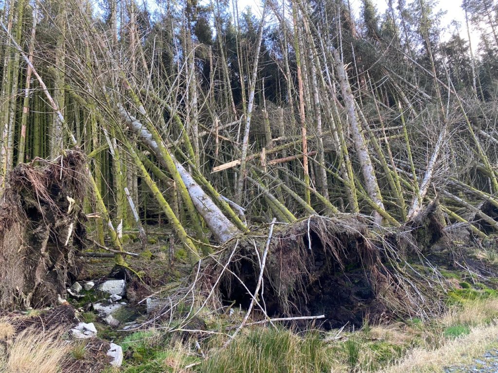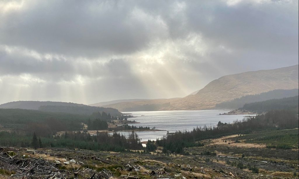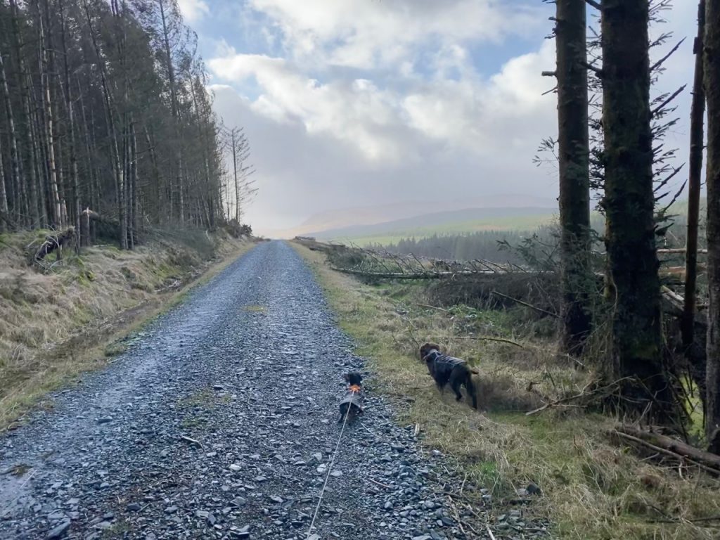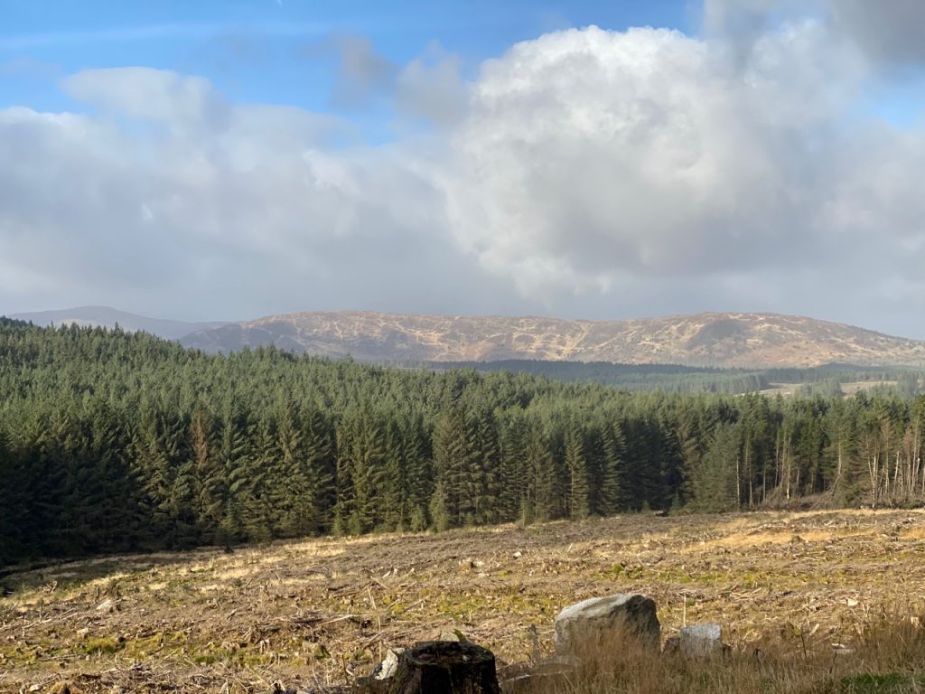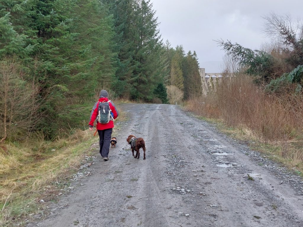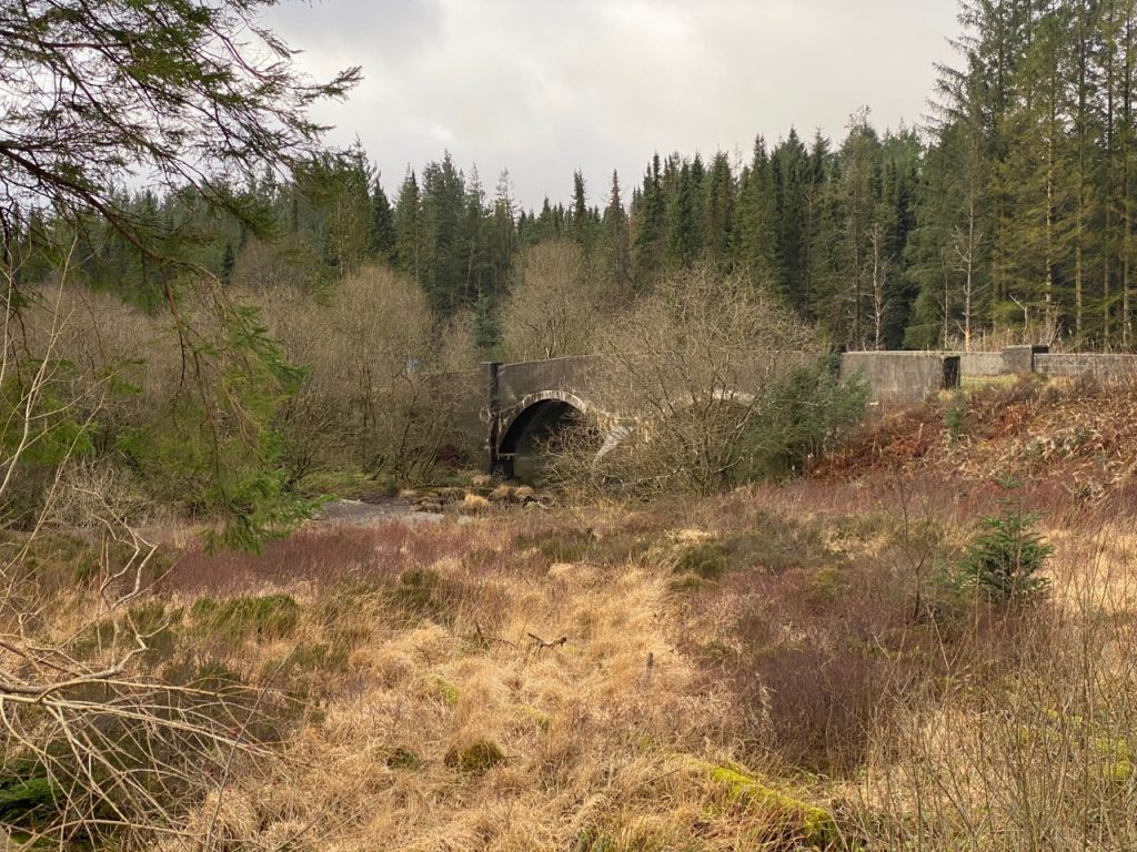 Our route had been from the car park at the Clatteringshaws end of the Raiders’ Road, across the newer auld brig and then along the forestry tracks used by the number 7 national cycleway. The road had climbed a little over the rise of Knocknevis passing within 200m of Loch Gower, but that was hidden in the forestry. The terrain beside the track was either mature forest, new growth, the morass of felled forest or marshy. The forest plantations were often dense with growth or with fallen trees. I can’t say there was anywhere that offered particularly inviting off track walking options. (Though I have climbed Fell of Fleet from this track). After lunch we turned about and walked back, into the wind.