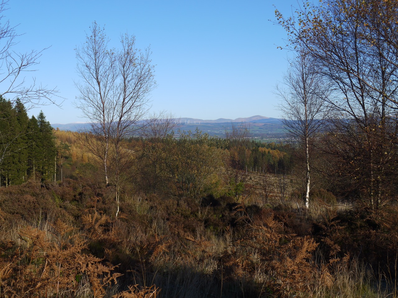 Various paths run around Marthrown Hill so I got myself on the highest one I could find then set off clockwise looking for a likely way up the hill. Much of the path has young trees densely planted beside it, so on and on I walked.