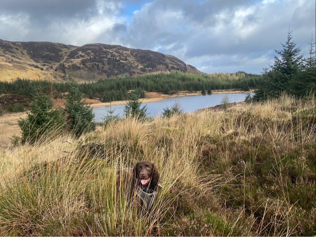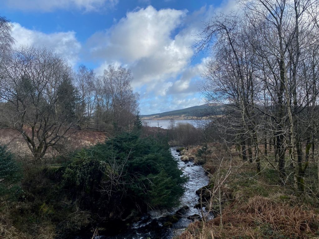 Back on track, we walked on with Craignell as a backdrop. The trees initially hid Lilie’s Loch from us but as you can see, it eventually showed itself. We were too far away to see if it had any lilies, but there were plenty of rushes and reeds.