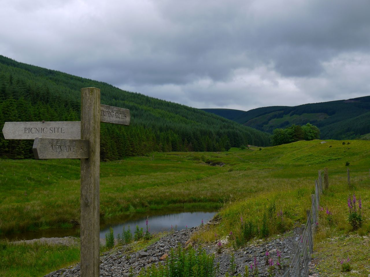 I parked close to a stand of trees at an old quarry opposite Glenjaan Linn. There is a sign to some nearby picnic tables. The OS map shows a path heading directly up a forest break to Bail Hill, but a brief glance up the forest break didn’t show any signs of a path and the way up looked quite steep. I am always wary of forest breaks and decided it might be easier to head up the unforested Dalwhat Hill instead.