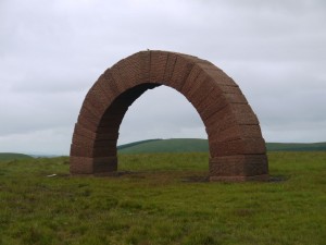 My challenge was to walk through each of the four Sandstone arches at Cairnhead, north of Moniaive on the same day. The Striding Arches were designed by Andy Goldsworthy in 2002. Each arch of hand-dressed red sandstone is four metres high, with a span of seven metres. Three arches are on the summits of Benbrack, Bail Hill and Colt Hill and there is also an arch at Conrick.