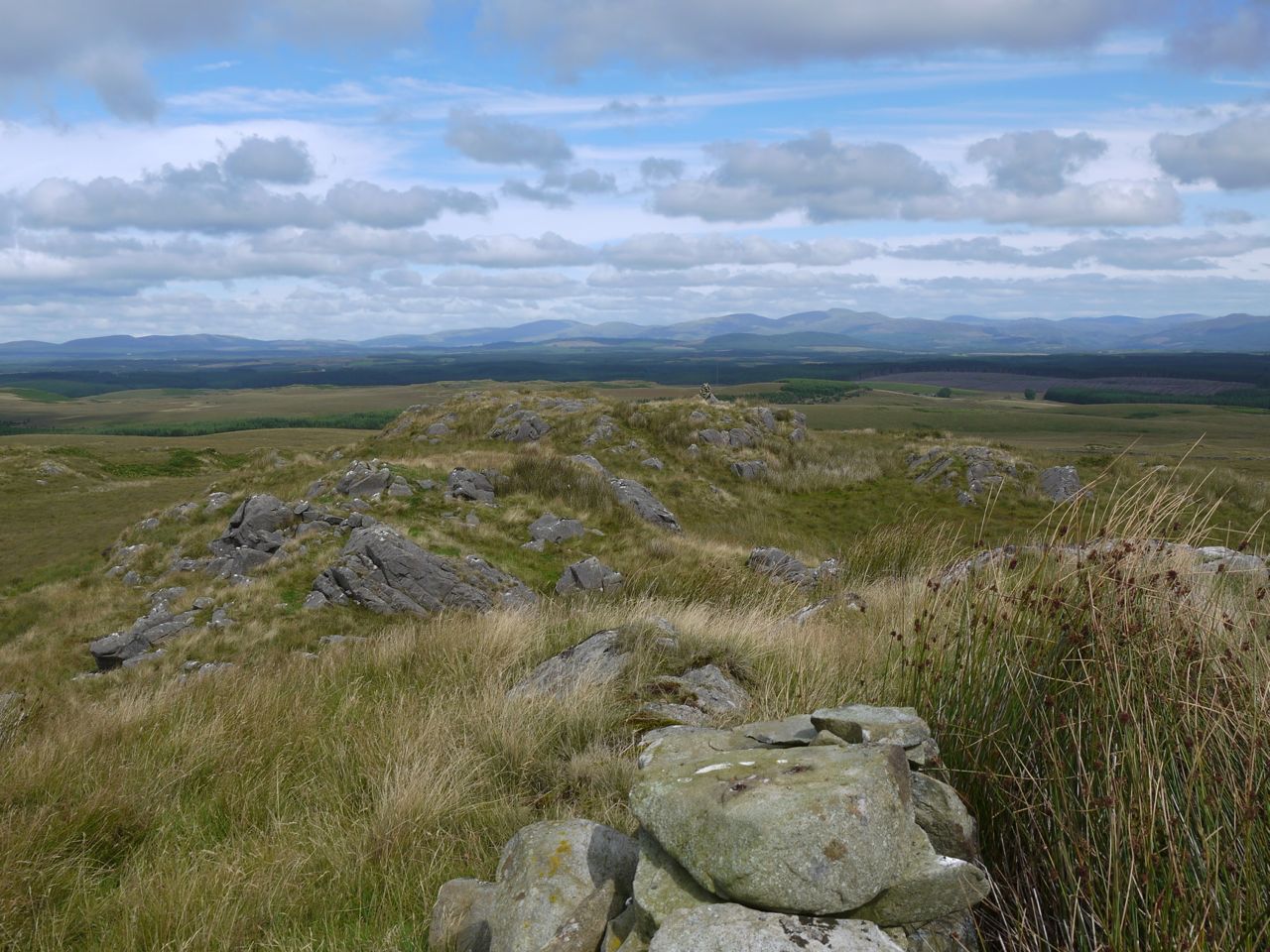 It was only a short walk from the tomb up to the top of Craigmoddie Fell and I am glad I decided to visit the top because there were good views. There is a small cairn at the summit and a larger cairn at the high ground to the NE looking out to Merrick. A radio mast in the photos had me convinced there was a scratch on my laptop screen for a while.