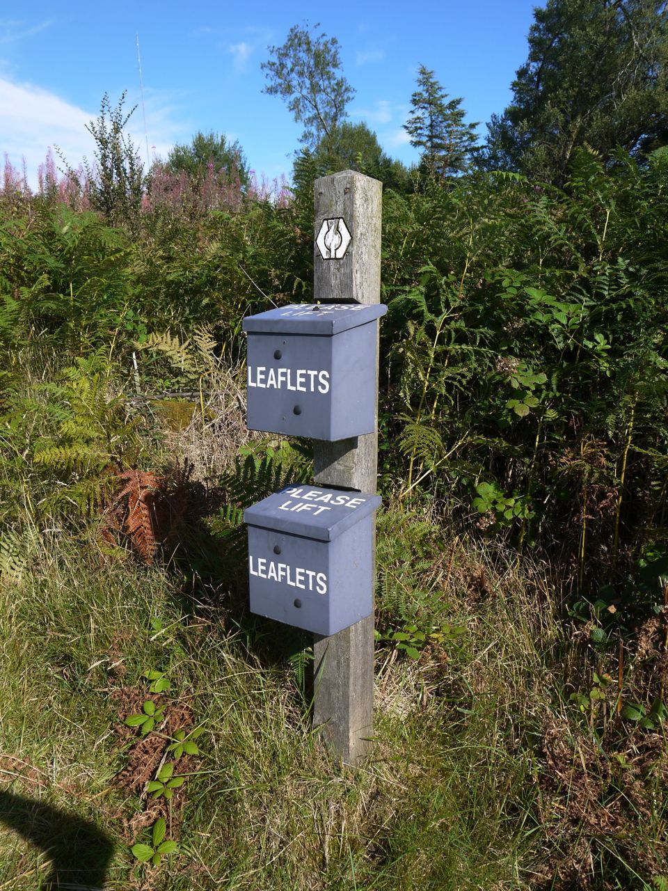 SUW leaflet BoxOn the OS map the SUW takes a loop beyond Derry Farm but there was a path cutting out the dog-leg. I was wondering if we would be cheating using this short-cut but then noticed the path had a fancy wooden kissing gate and a leaflet box tacked on to an SUW marker post, so it was the correct way.