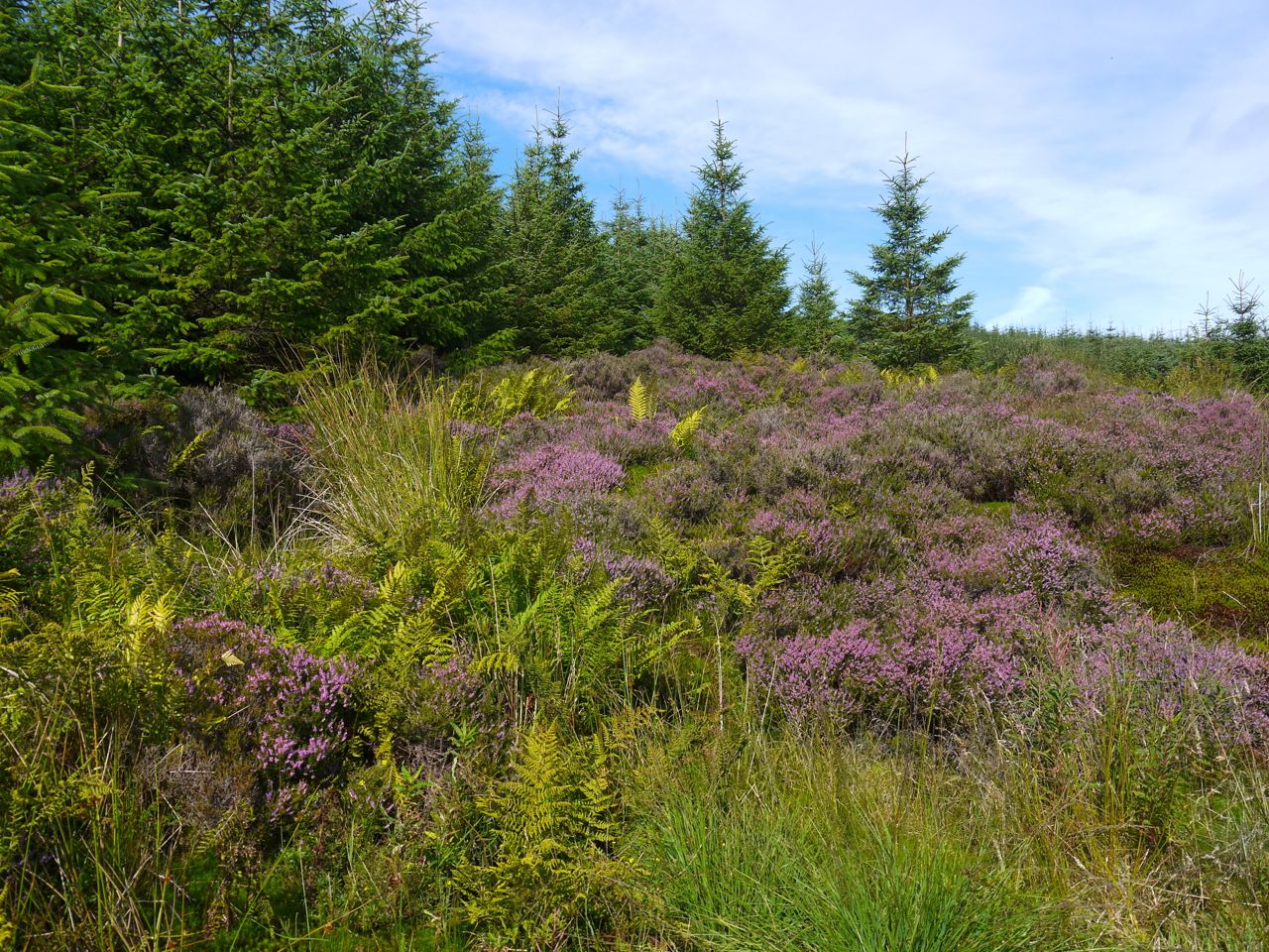 The forest had been replanted and when we looked down the only break in the trees it did not look inviting. Looking over the obviously marshy land I knew it was the sort of section I would think of as a challenge beforehand and a mistake afterwards, so we stuck with the forestry track until we were back to the SUW and walking in the sun allowed our trousers to dry.