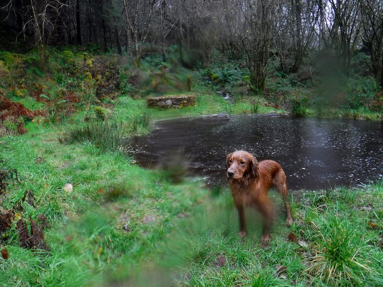 The last time we were here there were sheep, llamas and cows, but this time the fields were empty. But the dogs had to stay on leads because the track here has several cattle grids. I worry that the dogs will break a leg if they run across these. They don’t seem worried about being on a lead but having a dog on a lead does make photography a little trickier.