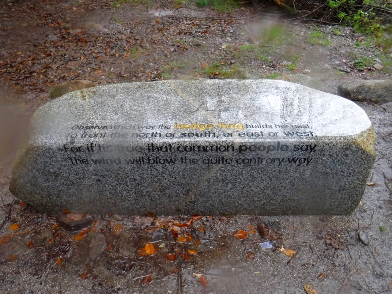 We passed the cottage at Ashybank, wondering if the trees on the bank, still free of leaves, might be ash trees. At Garwald the dogs had to go back on their leads while we negotiated cattle grids and the fields beyond had sheep so it seemed best to keep the leads on there too. We could tell we were nearing Eskdalemuir since there were prayer flags and a prayer painted on a stone at Garwald.