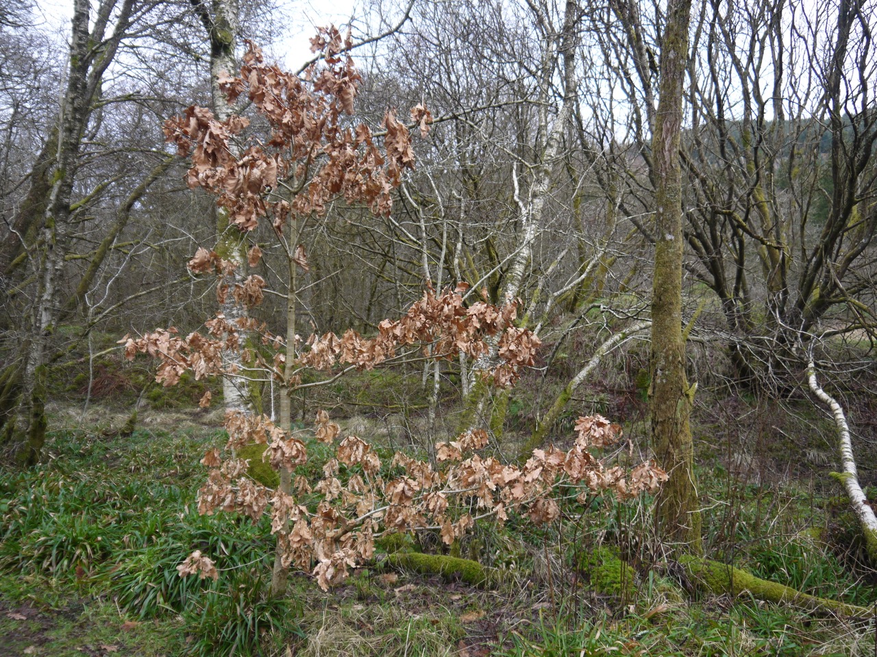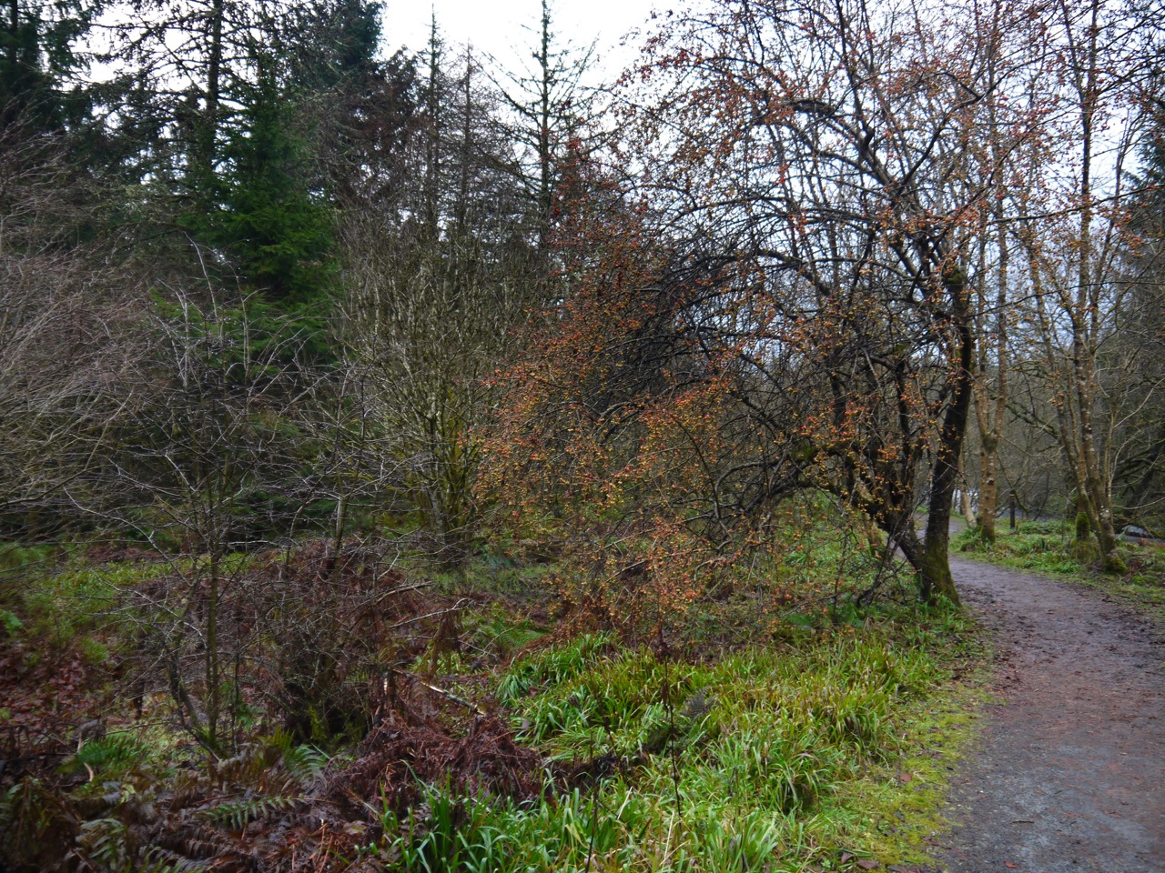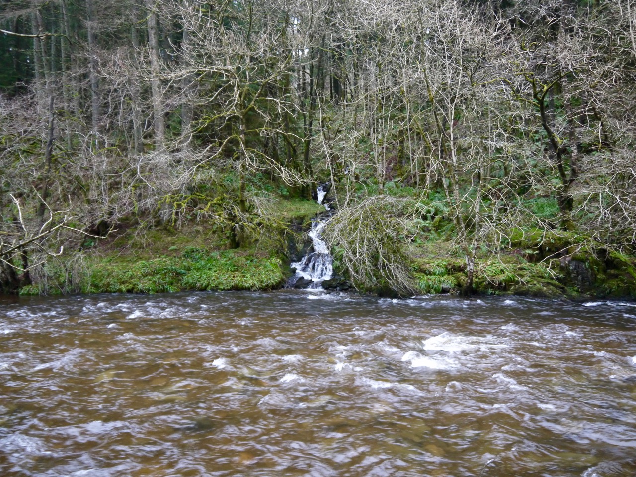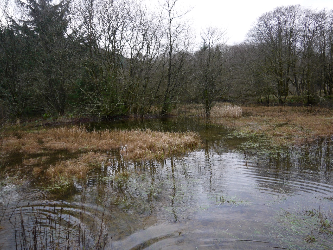 There were several ponds beside the farm road, one with a large stand of bullrushes. When we walked beside the river itself it was interesting to see the variety of rocks and boulders, some orange-pink, others grey and many shot through with streaks of different colours. Beyond the sheep fields the tree begin again and the river flows through a deep gorge, Garwald Linn. After this is was a short stroll back to the car which was parked in a lay-by on the main road.