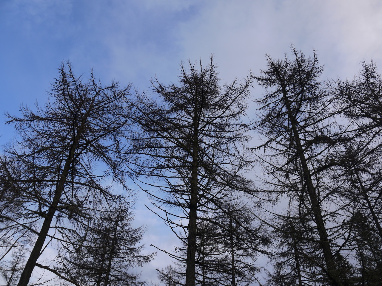 Beyond Craigbeck Hope the track begins to descend then winds beneath the forest of Birch Hill, high above the valley floor of Birch Sike. A side is a stream in boggy ground, which is probably still the case, but the trees here are now conifer rather than birch. In the distance the we could see snow dusted forest below a snow covered Loch Fell. I can believe that Birch Sike once ran amongst birches in the boggy ground, but Loch Fell is a strange name for a hill that does not have any lochs within 8km of its summit.
