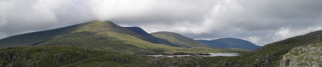 Craignaw and Dungeon hills, the Silver Flowe with the awful hand behind, from Milldown