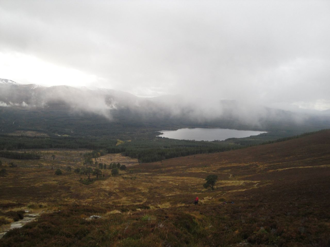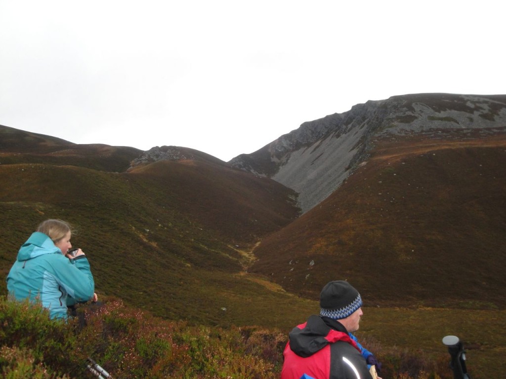From here we headed down past a small lochan and along curving spur down to Strath Nethy. Just past the lochan I took a tumble into the soft heather but found myself stuck on my back like a beetle on its back, until I was dragged back to my feet.