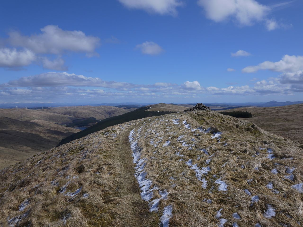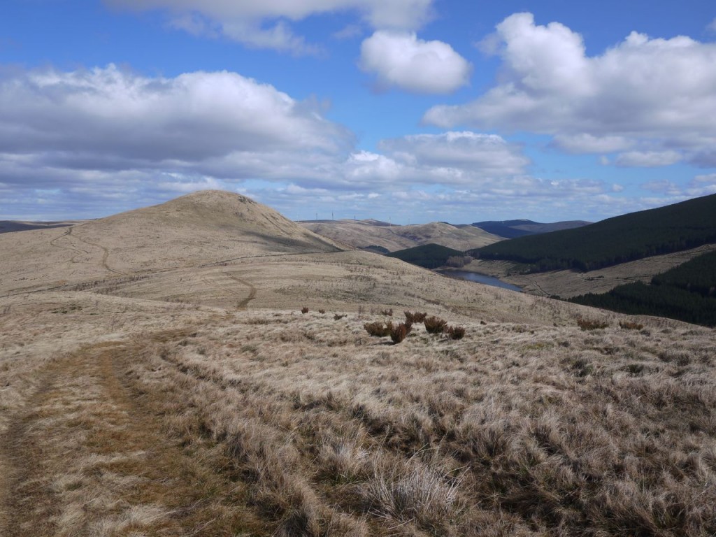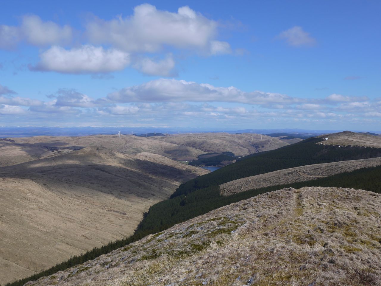 This was a straightforward route starting from the reservoir; through the forest to Innerdownie; along the ridge to Whitewisp Hill and Tarmangie Hill; across the shallow col to Cairnmorris Hill; along the ridge to Ben Shee then back down to the reservoir.